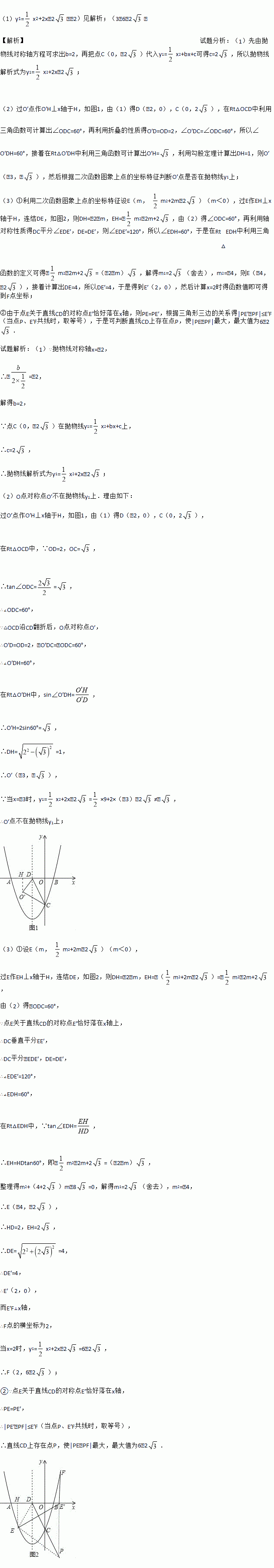 (3)若点E关于直线CD的对称点E′恰好落在x轴上,过E′作x轴的垂线交抛物线y1于点F,①求点F的坐标;②直线CD上是否存在点P,使|PE﹣PF|最大?若存在,试写出|PE﹣PF|最大值.