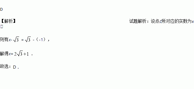 在如图所示的数轴上,点B与点C关于点A对称,A,B两点对应的实数是和-1,则点C所对应的实数是( )
