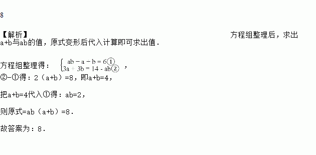 若实数a、b满足方程组,则a2b+ab2=______.