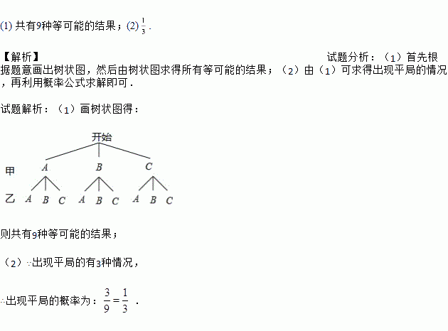 甲、乙两人都握有分别标记为A、B、C的三张牌,两人做游戏,游戏规则是:若两人出的牌不同,则A胜B,B胜C,C胜A;若两人出的牌相同,则为平局.