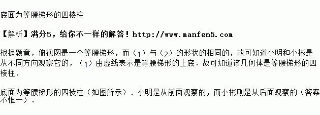 小明和小彬观察同一个物体,从俯视图看都是一个等腰梯形,但小明所看到的主视图如图所示,小彬看到的主视图如图所示.你知道这是一个什么样的物体?小明和小彬分别是从哪个方向观察它的?