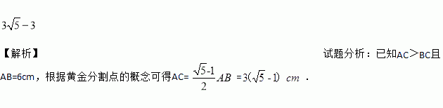 已知线段AB=6cm,点C为AB的黄金分割点,且AC>BC,则AC=_____.