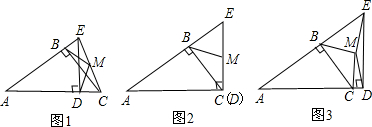 已知:在△ABC中,∠ABC=90°,点E在直线AB上,ED与直线AC垂直,垂足为D,且点M为EC中点,连接BM,DM.