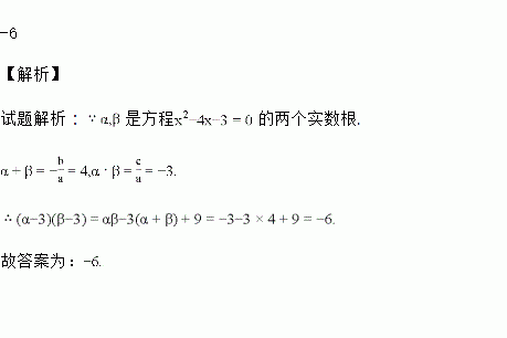 已知α、β是一元二次方程x2-4x-3=0的两实数根,则(α-3)(β-3)=________.