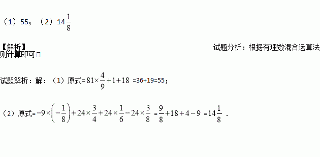 (1)(﹣3)4÷(1)2﹣6×()+|﹣32﹣9|;