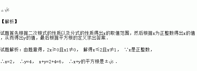 已知x是正整数,且满足,求的平方根.