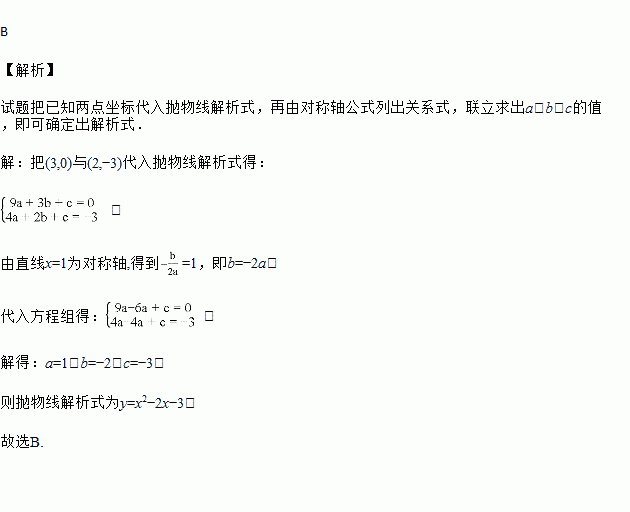 抛物线y=ax2+bx+c经过点(3,0)和(2,﹣3),且以直线x=1为对称轴,则它的解析式为( )
