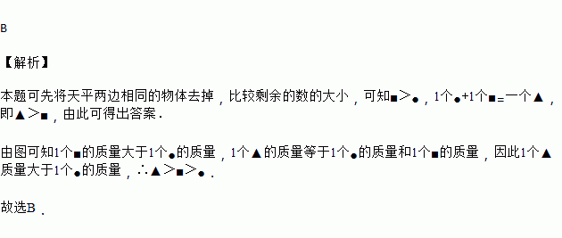 设▲,●,■表示三种不同的物体,现用天平称了两次,情况如图所示,那么▲,●,■这三种物体的质量从大到小的顺序排列应为( )