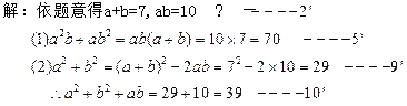 (本题10分)如图4,边长为的矩形,它的周长为14,面积为10,求下列各式的值:(1)(2) 29.