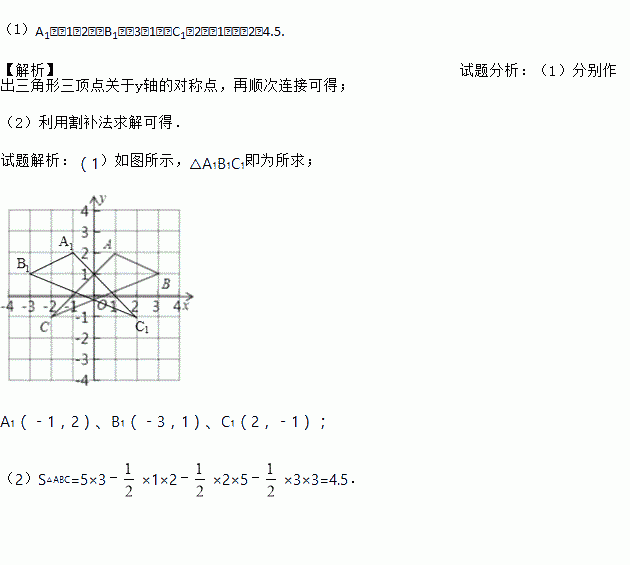 (1)在图中作出△ABC关于y轴对称的△A1B1C1,并写出对称点的坐标;