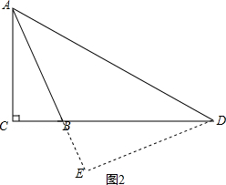 ②如图2,由旋转的性质得到∠DAE=45°根据勾股定理得到AB=$\sqrt{A{C}^{2}+B{C}^{2}}$=$\sqrt{29}$,过D作DE⊥AB于E,设AE=DE=x,得到BE=x-$\sqrt{29}$,根据相似三角形的性质得到$\frac{BE}{BC}=\frac{DE}{AC}$,即$\frac{x-\sqrt{29}}{2}=\frac{x}{5}$,求得DE=$\frac{5\sqrt{29}}{3}$,BE=$\frac{2\sqrt{29}}{3}$,根据勾股定理即可得到结论.