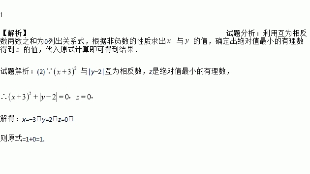 已知(x+3)2与|y﹣2|互为相反数,z是绝对值最小的有理数,求(x+y)y+xyz的值.