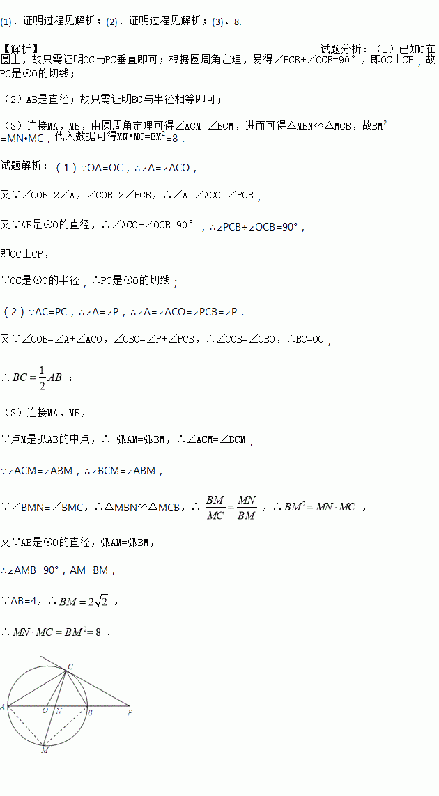 (1)求证:PC是⊙O的切线;