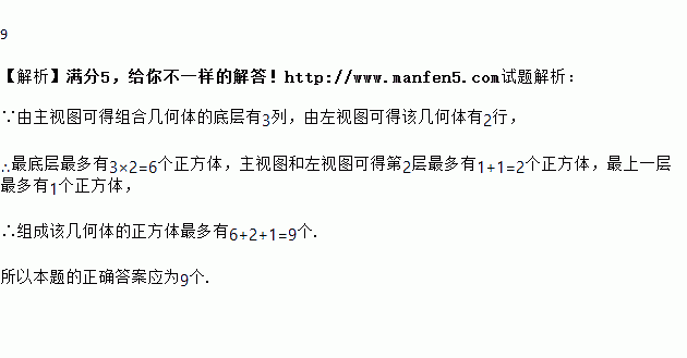 如图是由几个小立方块搭成的几何体的主视图与左视图,这个几何体最多可能有________个小立方块.