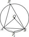 ,根据勾股定理的逆定理得到∠AOB=90°,分类讨论:当点在优弧AB上,根据圆周角定理得到∠AP1B=