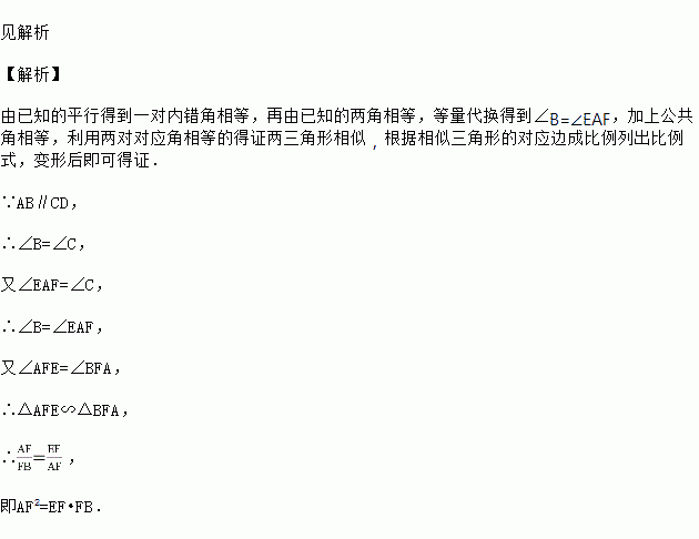 如图,已知AB∥CD,AD,BC相交于E,F为EC上一点,且∠EAF=∠C.