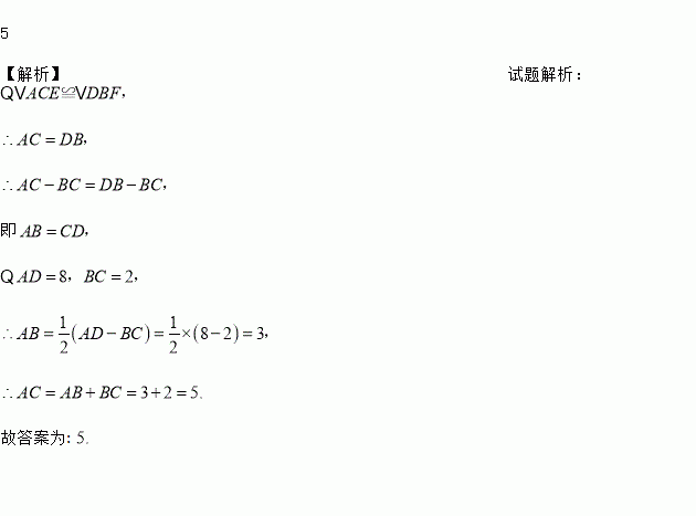 如图,已知△ACE≌△DBF,CE=BF,AE=DF,AD=8,BC=2,则AC=______.