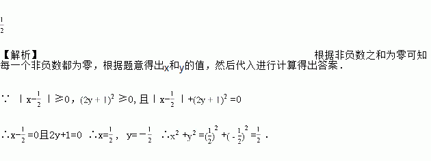 已知|x-|+(2y+1)2=0,求x2+y2的值是多少?