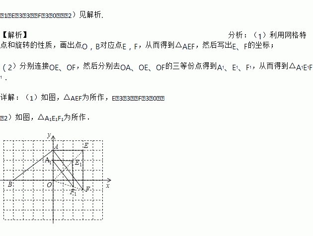 (1)将△AOB绕点A逆时针旋转90°得到△AEF,点O,B对应点分别是E,F,请在图中画出△AEF,并写出E、F的坐标;