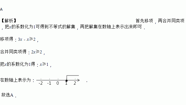 在数轴上表示不等式3x≥x+2的解集,正确的是( )