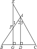 分析:先根据已知条件推出AD∥EF,再由平行线的性质得出∠1=∠2,∠3=∠E,结合已知通过等量代换即可得到∠2=∠3,根据角平分线的定义可知AD是∠BAC的平分线.