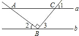 如图,直线a∥b,点B在直线b上,且AB⊥BC,∠1=50°,求∠2的度数.