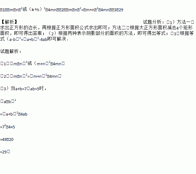 图1是一个长为2m、宽为2n的长方形,沿图中虚线用剪刀均分成四块小长方形,然后按图2的形状拼成一个正方形.