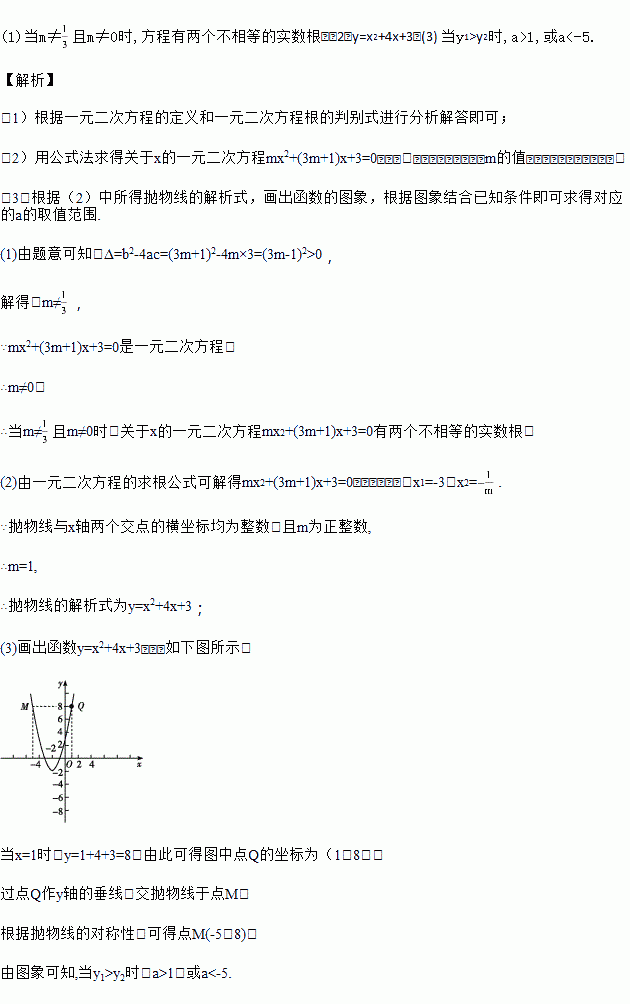 (2)当抛物线y=mx2+(3m+1)x+3与x轴两个交点的横坐标均为整数,且m为正整数时,求此抛物线的解析式;