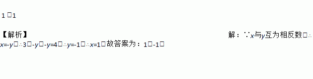 已知x与y互为相反数,且3x-y=4,则x=______,y=______.
