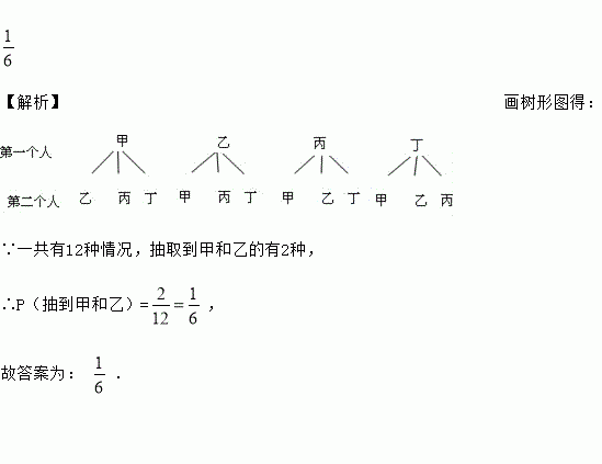 从甲、乙、丙、丁4名学生中随机抽取2名学生担任数学小组长,则抽取到甲和乙概率为_____.