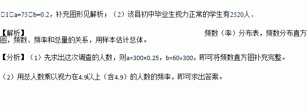 (2)若视力在4.9以上(含4.9)均属正常,估计该县5600名初中毕业生视力正常的学生有多少人?