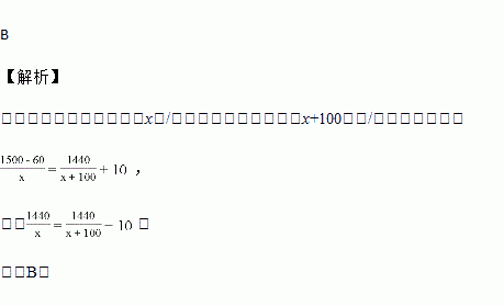 小朱要到距家1500米的学校上学,一天,小朱出发10分钟后,小朱的爸爸立即去追小朱,且在距离学校60米的地方追上了他.已知爸爸比小朱的速度快100米/分,求小朱的速度.若设小朱速度是x米/分,则根据题意所列方程正确的是( )