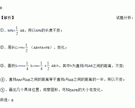 如图,点A,B为定点,定直线l//AB,P是l上一动点.点M,N分别为PA,PB的中点,对于下列各值: