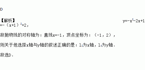 的其中一条当成y轴,且向上为正方向,并且在此平面直角坐标系上画出二次函数