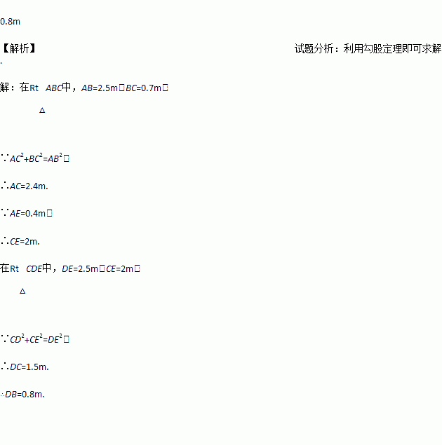 如图,一架2.5米长的梯子AB,斜靠在一竖直的墙AC上,这时梯足B到墙底端C的距离为0.7米,如果梯子的顶端沿墙下滑0.4米,那么梯足将向外移多少米?
