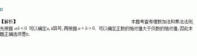 C. a<0,b<0 D. a、b异号且正数的绝对值大