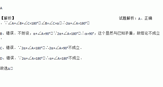 如图,△ABC中,∠B=∠C=∠EDF=α,BD=CF,BE=CD,则下列结论正确的是( )