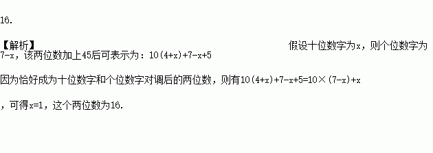 一个两位数的十位数字和个位数字之和为7,如果把这个两位数加上45,那么恰好成为十位数字和个位数字对调后的两位数,则这个两位数为_______.