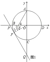 如图,在平面直角坐标系中,A点的坐标为(0,3),以O为圆心,OA为半径作圆,该圆与坐标轴分别交于A、B、C、D四点,弦AF交半径OB于点E,过点F作⊙O的切线分别交x轴、y轴于P、Q两点.
