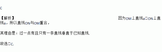 C 【解析】因为OM⊥直线a,ON⊥直线a,所以直线ON与OM重合, 其理由是:过一点有且只有一条直线垂直于已知直线. 故选:C.