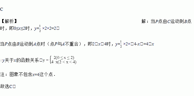 如图,正方形ABCD的边长为2,动点P从C出发,在正方形的边上沿着C→B→A的方向运动(点P与A不重合).设P的运动路程为x,则下列图象表示△ADP的面积y关于x的函数关系的是( )