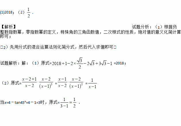 (2)先化简,再求值: ,其中x=4﹣tan45°.