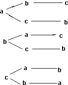 解:设“欢欢”,“迎迎”和“妮妮”分别为a、b、c,画树状图得: