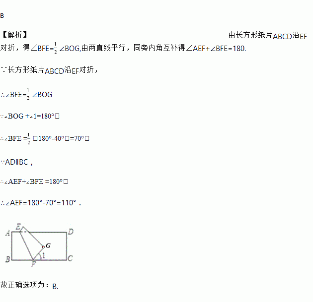 如图,把长方形ABCD沿EF对折后使两部分重合,若∠1=40°,则∠AEF=( ).