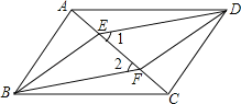 如图,四边形ABCD是平行四边形,E、F是对角线AC上的两点,∠1=∠2.