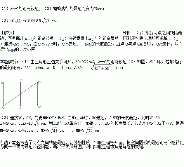 后方去捕捉它,如图3所示,求螳螂爬行的最短距离;(提示: