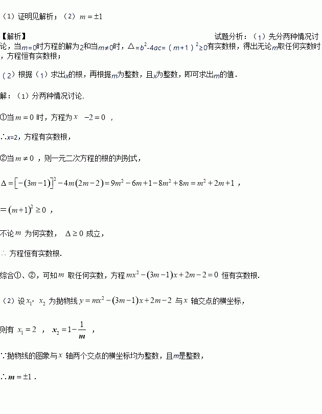 (1)求证:无论取任何实数时,方程恒有实数根;