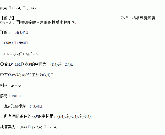 如图,在平面直角坐标系中,分别平行于轴、轴的两直线、相交于点.连接,若在直线上存在点,使是以为腰的等腰三角形.请写出所有满足条件的点的坐标是________.