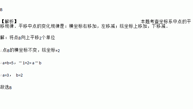 将点B(5,-1)向上平移2个单位得到点A(a+b, a-b)。则( )