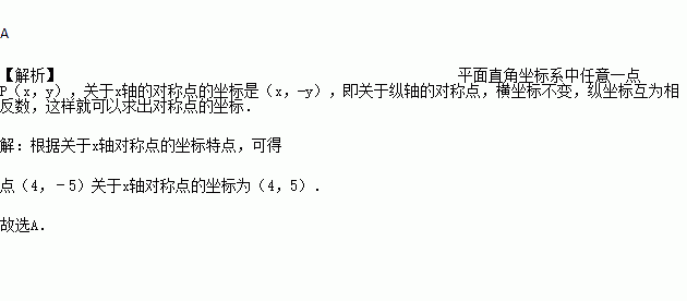 在平面直角坐标系中,点(4,﹣5)关于x轴对称点的坐标为( )